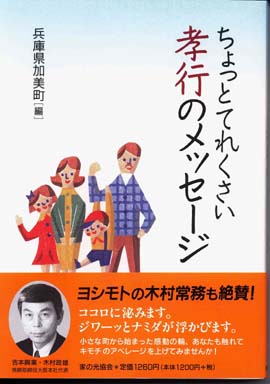 | 募集内容 | 直接言うのはちょっと照れくさい、そんな孝行のメッセージを募集。 この公募は、山仕事で足を失った養父にかわり、15歳から家計を支え続け、大正時代に「孝子節婦」3人の内の1人に 選ばれた女性、故・森安小春さんの不屈の精神と徳を伝えようと、市原地区の「孝行の里づくり」 の一環として、 1996(平成8)年度より実施。 毎年、55(孝行) 作品を選び、優秀作品集を作成している。 また、第1回より15回の優秀作品を収録した作品集を出版しており、希望者には1冊500円で限定販売を行っている。 ご希望の方は、直接事務局までお問い合わせください。 |